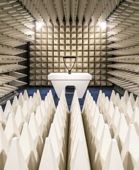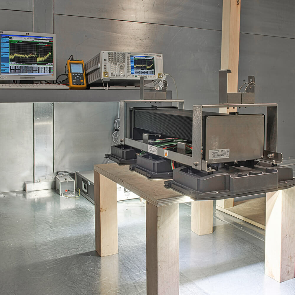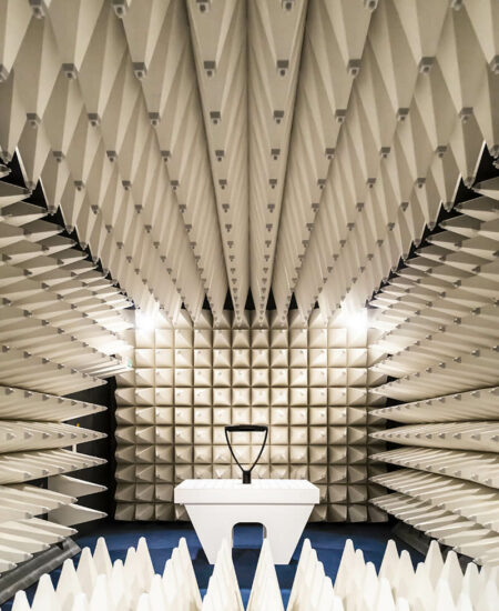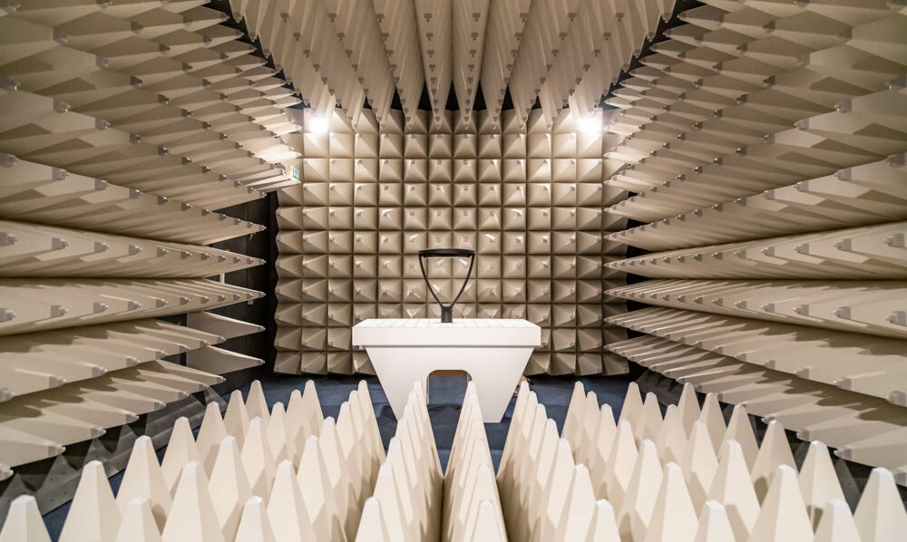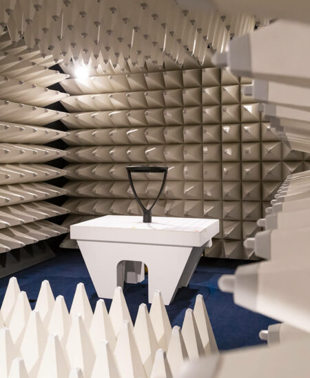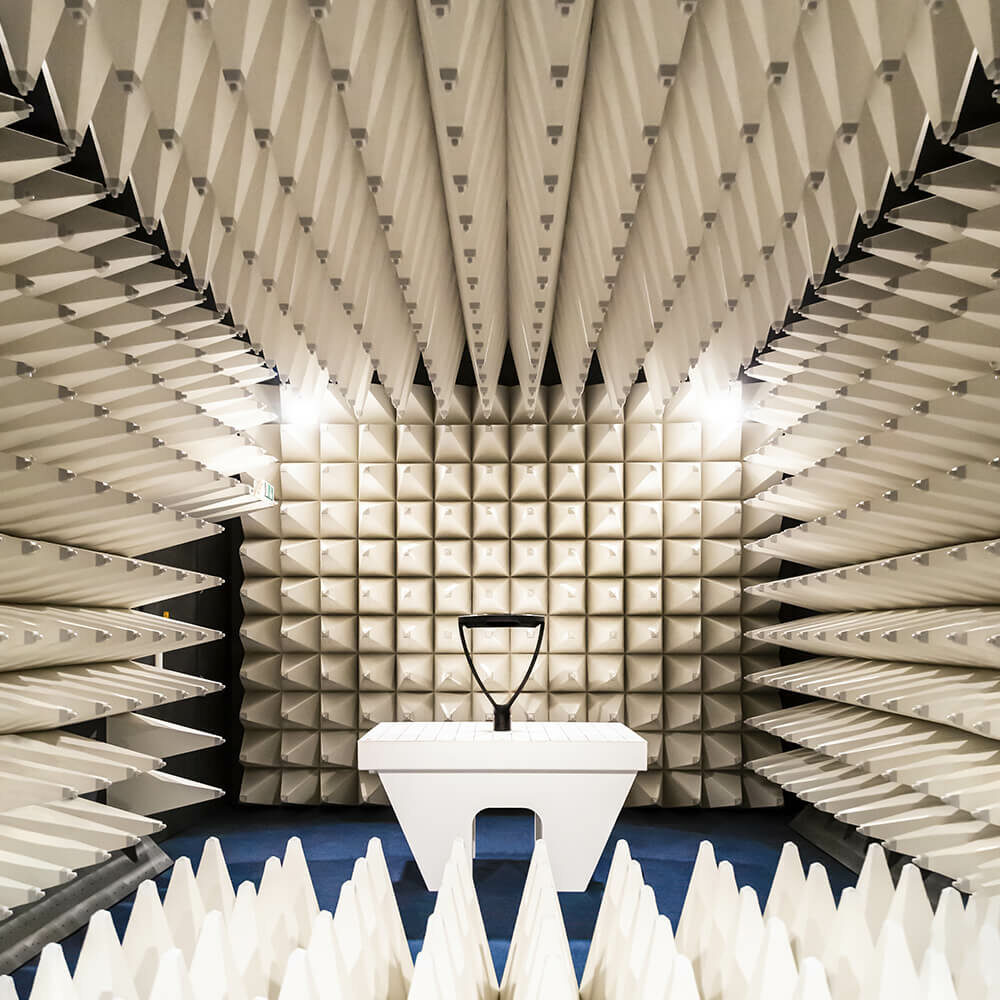 Tout dispositif électrique avant sa mise sur le marché doit être testé pour vérifier qu’il ne peut pas nuire à la santé de l’utilisateur, qu’il ne cause pas d’interférences avec d’autres appareils à proximité et qu’il ne subisse pas les perturbations que ces mêmes équipements diffusent. Les tests de compatibilité électromagnétique (également appelés tests EMC) sont effectués en chambre anéchoïque afin de garantir que les appareils continuent à fonctionner correctement sans interférence entre eux et sans être affectés par des fréquences externes. La chambre anéchoïque sert en effet à recréer, dans un environnement fermé, des conditions simulées d’espace ouvert de taille infinie, étant donné l’absence de réflexions de ses murs complètement blindés.