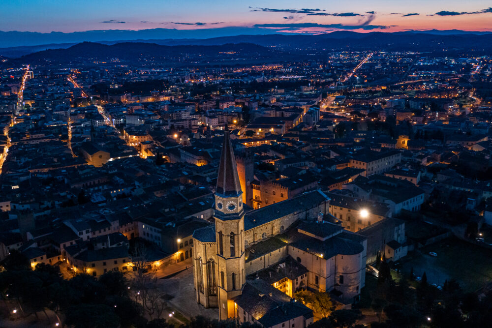 L’initiative d’éclairer à LED l’un des plus importants symboles de la ville est née du Lions Club Host Arezzo, qui a trouvé les fonds nécessaires pour la conception de l’installation. Pendant 3 ans, il a été question de la rénovation de la cathédrale par la LED, dans le but de l’éclairer de manière homogène et permettre aux citoyens d’Arezzo de fréquenter cet important quartier historique, même la nuit. Le projet voulait donc restituer à la façade une vision nocturne semblable à la vision diurne, sans aller à dénaturer son aspect et en maintenant une perception visuelle tout à fait uniforme et harmonieuse.