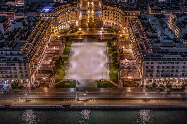 Découvrez le projet d’éclairage LED de la place Aristotelous, la place principale de Thessalonique, créé grâce à la puissance des projecteurs AEC pour les grands espaces.