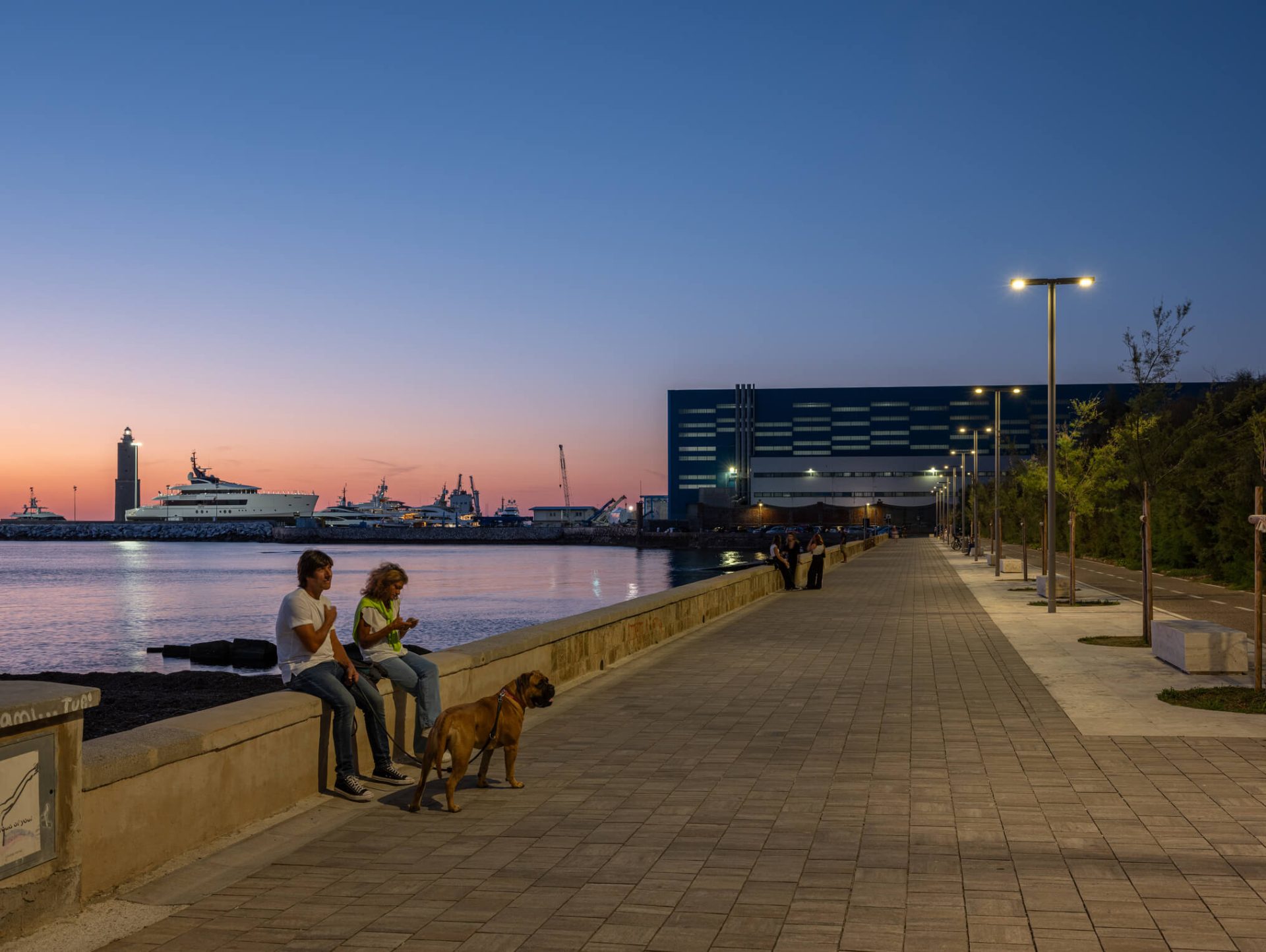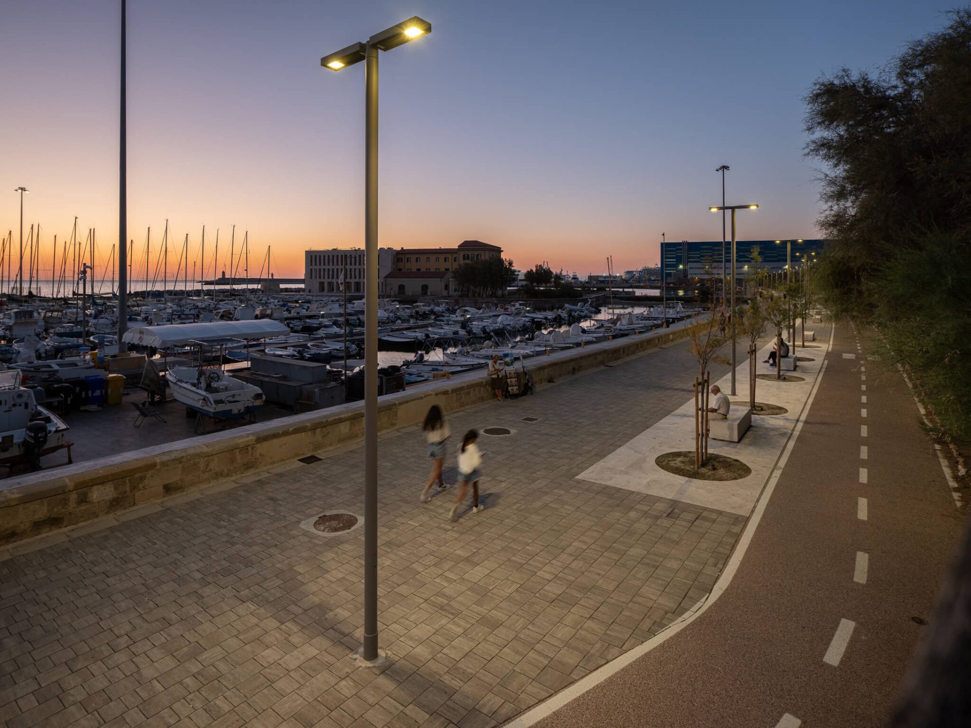 Le nouveau système LED garantit une lumière confortable et bien maîtrisée, conçue pour valoriser le parcours, les bancs et les zones de belvédère. Une intervention qui redonne au waterfront une nouvelle identité nocturne, plus accueillante, ordonnée et agréable à vivre.