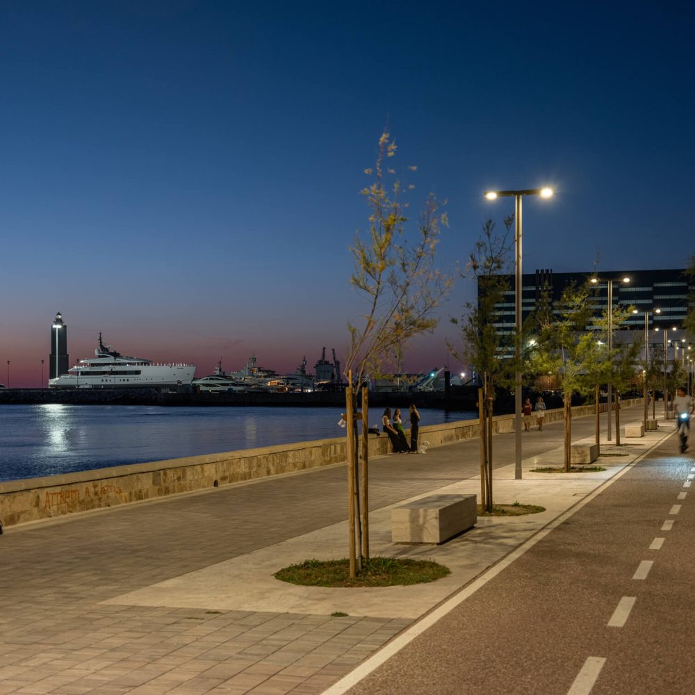Cette intervention améliore non seulement la sécurité, le confort visuel et l’usage du front de mer, mais contribue également à réduire la pollution lumineuse grâce à de hautes performances et à des solutions technologiques attentives à l’équilibre environnemental.